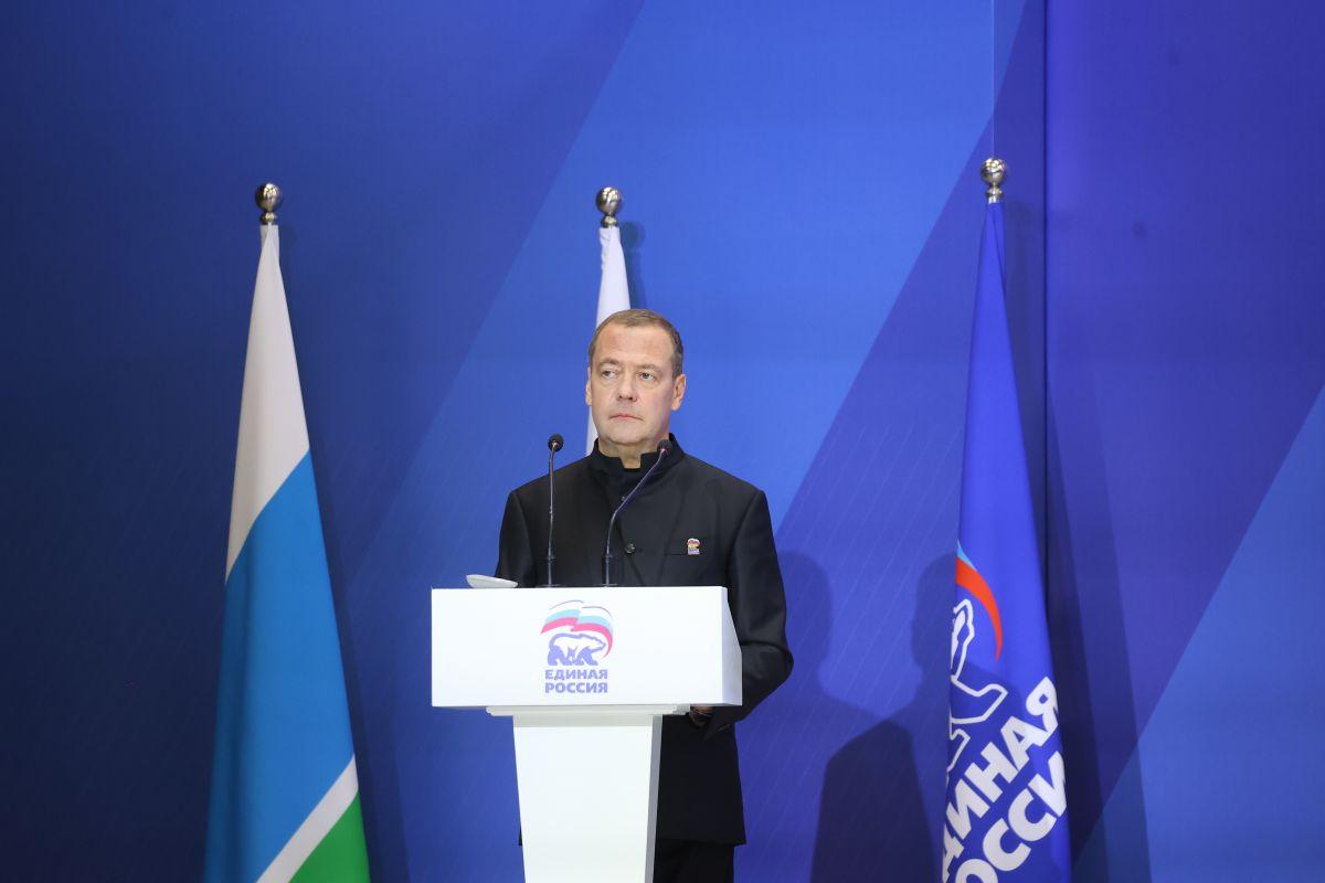 Зампредседателя Совбеза РФ, председатель "Единой России" Дмитрий Медведев уверен, что партия способна преодолеть любые проблемы и достичь целей, поставленных президентом