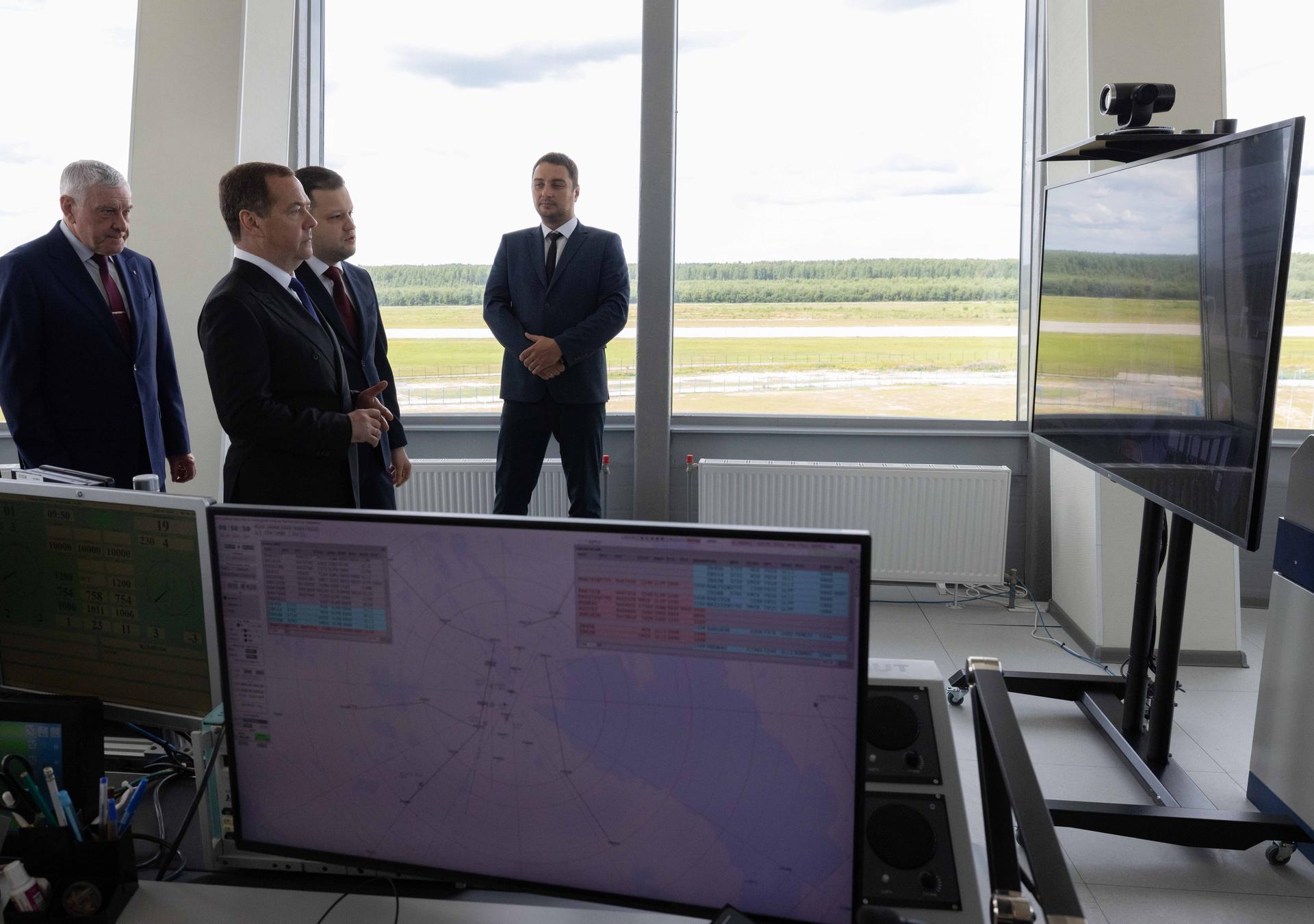 В диспетчерском зале он ознакомился с работой регионального центра организации воздушного движения. Беседуя с руководством и сотрудниками командно-диспетчерского центра, еще раз напомнил о том, что правильным образом сформированные туристические маршруты помогут повысить интерес граждан к воздушным путешествиям и увеличить количество рейсов в аэропортах северо-западных регионов России. В книге почетных гостей Дмитрий Медведев оставил запись с пожеланием успеха сотрудникам центра.